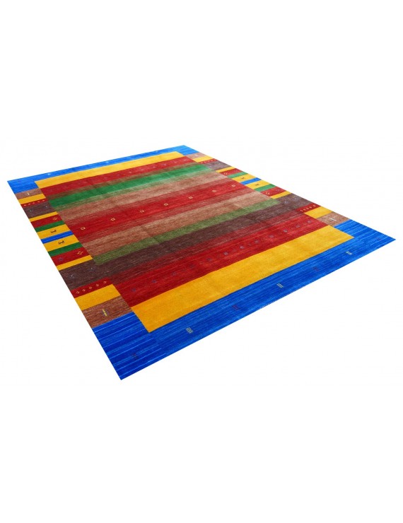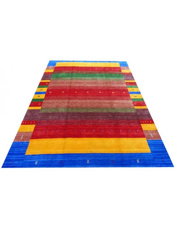 Loribaft carpets originate from Persia and India, combine typical nomadic patterns, and are significantly finer woven than Gabbeh carpets. These carpets are made from sheep's wool only and with natural dyes. The fringes are refined, the designs are often symbolic and designed for special occasions (weddings, birthdays, etc.). The rug is usually crossed with a coloured wool thread at the side end. The strong colours have a beautiful patina because only natural raw materials are used in the dyeing process. Loribaft is the jewel of the modern.