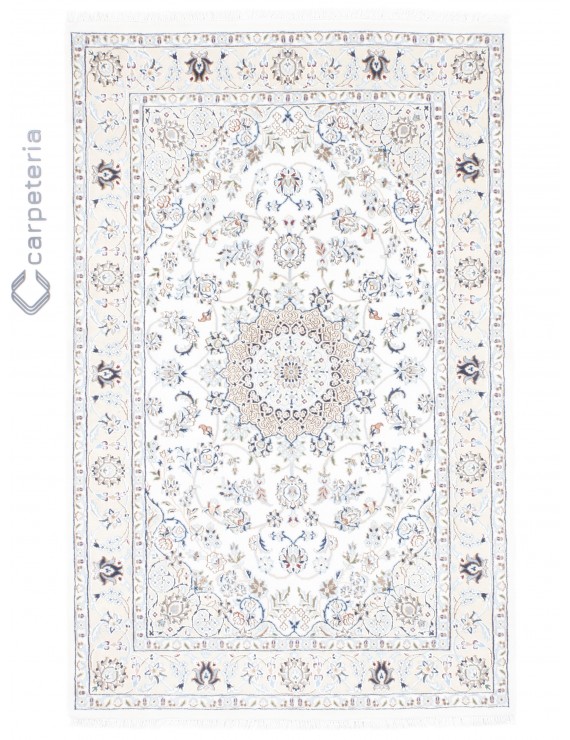 Nain is an elegant, classic carpet. Its special feature is the pendant in the centre, often in a combination of blue and white. There are three quality categories. 12la, 9la and the best quality 6la.