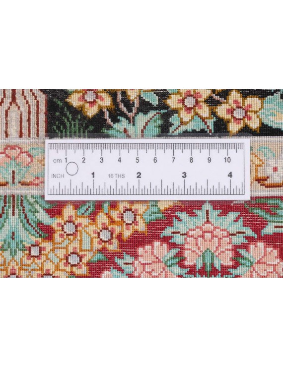 Genuine Persian Ghom or Qom carpets are a sign of discreet luxury and are among the most expensive oriental carpets ever. It originates from the Iranian city of Qom, where it and the surrounding villages have been weaved by artists for only a century. Local designers began making them around 1920, based on original Caucasian designs, and gradually began to weave original carpets of high quality, the finest of which can reportedly have up to around 1.6 million knots per square metre, an absolute record. In comparison, rough carpets have around 25,000 knots per m2 and a skilled weaver can make 10,000 knots per hour. Initially, lambswool was the most widely used material for Qom carpets, but gradually they began to be knotted from local silk. The traditional colours are red, dark blue and ivory, and the motifs are medallion or bouquet of flowers. Qom are usually weaved in smaller or medium sizes and are often used as wall carpets. They are also given as state gifts; a Qom tied by two women for three years was given, for example, to former Japanese Prime Minister Shinzō Abe on a visit to Iran, and presented to him by Iranian President Rouhani, who said that such a gift showed Iranian patience, punctuality and consistency. The top Qom carpet manufacturers usually have long-term contracts to exclusively supply their entire production to one or two importers in Western Europe.