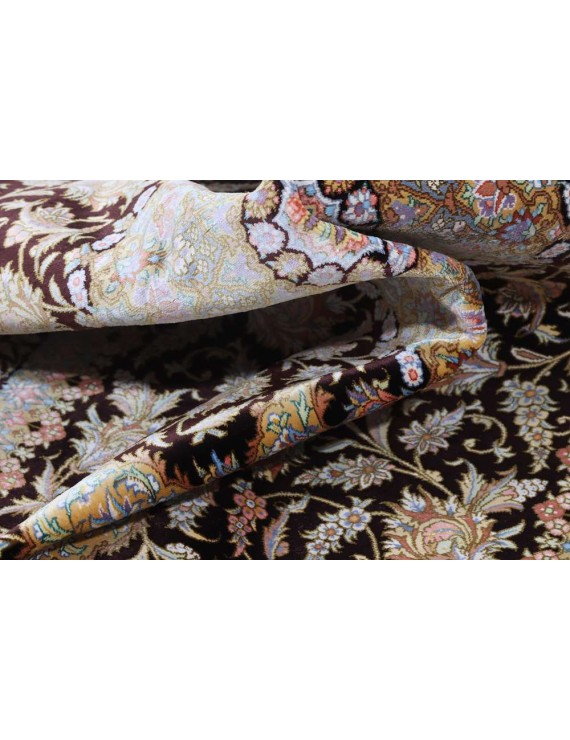 Genuine Persian Ghom or Qom carpets are a sign of discreet luxury and are among the most expensive oriental carpets ever. It originates from the Iranian city of Qom, where it and the surrounding villages have been weaved by artists for only a century. Local designers began making them around 1920, based on original Caucasian designs, and gradually began to weave original carpets of high quality, the finest of which can reportedly have up to around 1.6 million knots per square metre, an absolute record. In comparison, rough carpets have around 25,000 knots per m2 and a skilled weaver can make 10,000 knots per hour. Initially, lambswool was the most widely used material for Qom carpets, but gradually they began to be knotted from local silk. The traditional colours are red, dark blue and ivory, and the motifs are medallion or bouquet of flowers. Qom are usually weaved in smaller or medium sizes and are often used as wall carpets. They are also given as state gifts; a Qom tied by two women for three years was given, for example, to former Japanese Prime Minister Shinzō Abe on a visit to Iran, and presented to him by Iranian President Rouhani, who said that such a gift showed Iranian patience, punctuality and consistency. The top Qom carpet manufacturers usually have long-term contracts to exclusively supply their entire production to one or two importers in Western Europe.