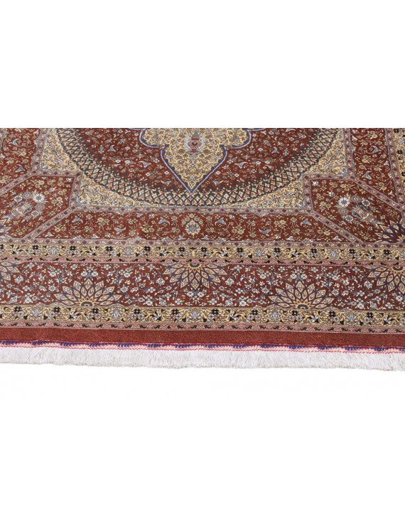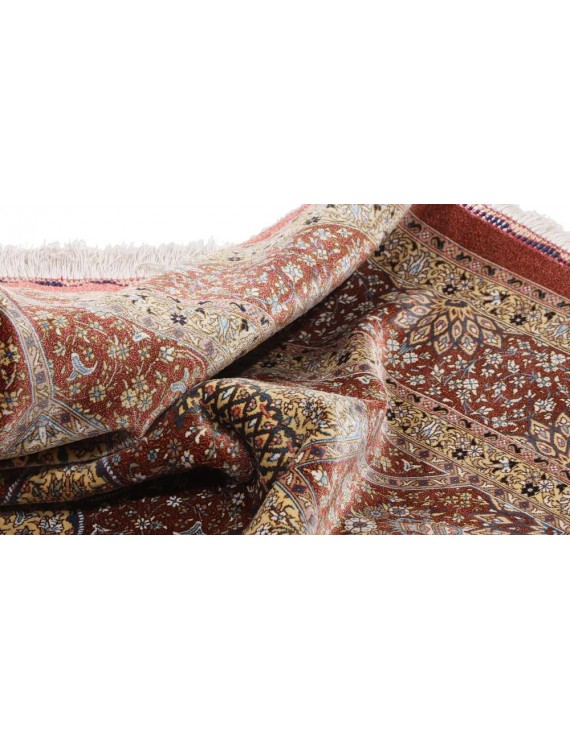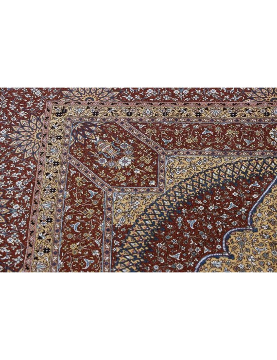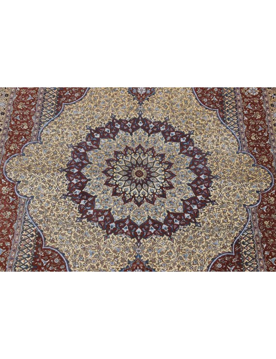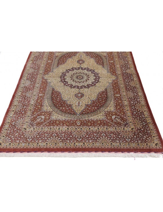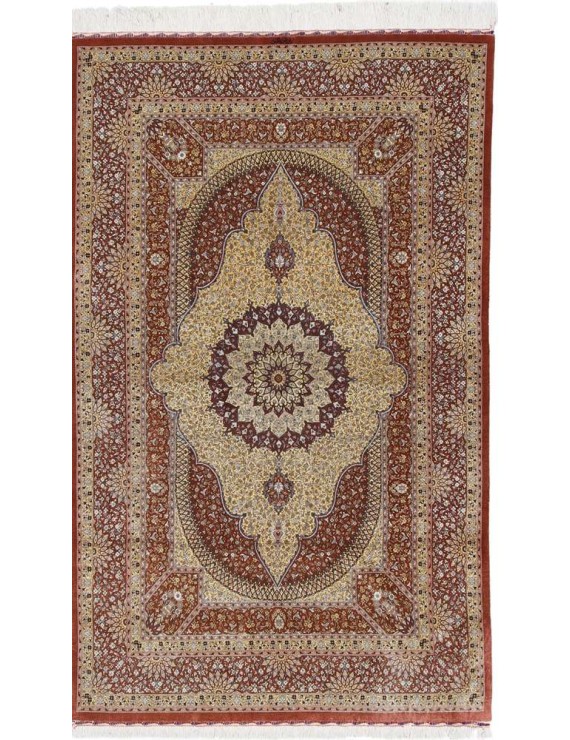 Genuine Persian Ghom or Qom carpets are a sign of discreet luxury and are among the most expensive oriental carpets ever. It originates from the Iranian city of Qom, where it and the surrounding villages have been weaved by artists for only a century. Local designers began making them around 1920, based on original Caucasian designs, and gradually began to weave original carpets of high quality, the finest of which can reportedly have up to around 1.6 million knots per square metre, an absolute record. In comparison, rough carpets have around 25,000 knots per m2 and a skilled weaver can make 10,000 knots per hour. Initially, lambswool was the most widely used material for Qom carpets, but gradually they began to be knotted from local silk. The traditional colours are red, dark blue and ivory, and the motifs are medallion or bouquet of flowers. Qom are usually weaved in smaller or medium sizes and are often used as wall carpets. They are also given as state gifts; a Qom tied by two women for three years was given, for example, to former Japanese Prime Minister Shinzō Abe on a visit to Iran, and presented to him by Iranian President Rouhani, who said that such a gift showed Iranian patience, punctuality and consistency. The top Qom carpet manufacturers usually have long-term contracts to exclusively supply their entire production to one or two importers in Western Europe.